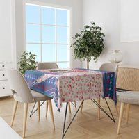 Slovakia Christmas Tablecloth with Bear Holding Tree Gingerbread Cookies and Red Blue Snowflake Pattern Design TS04
