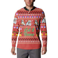 Snowman Let It Snow Christmas Button Sweatshirt Xmas Holiday Patterns TS04