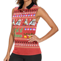 Snowman Let It Snow Christmas Women Sleeveless Polo Shirt Xmas Holiday Patterns TS04