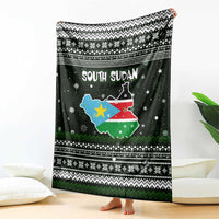 South Sudan Christmas Blanket with National Map, Flag Colors, and Sleeping Rhino Motif TS04