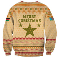South Sudan Christmas Sweatshirt with Beige Tribal Pattern, National Emblem, and Green Star Motif TS04