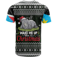South Sudan Christmas T Shirt with National Map, Flag Colors, and Sleeping Rhino Motif TS04