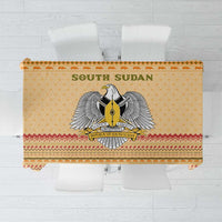 South Sudan Christmas Tablecloth with Beige Tribal Pattern, National Emblem, and Green Star Motif