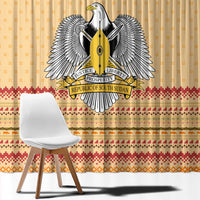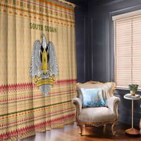 South Sudan Christmas Window Curtain with Beige Tribal Pattern, National Emblem, and Green Star Motif