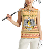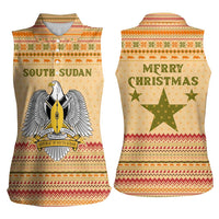 South Sudan Christmas Women Sleeveless Polo Shirt with Beige Tribal Pattern, National Emblem, and Green Star Motif