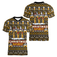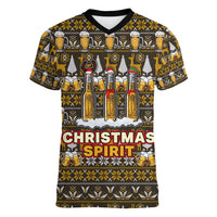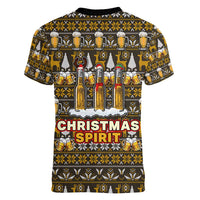 Spirit Beer Christmas Women V-Neck T-Shirt Xmas Holiday Patterns