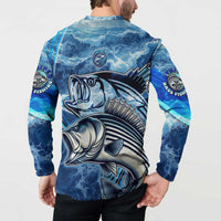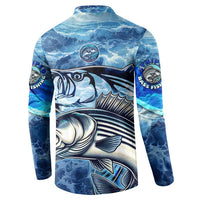 Striped Bass Fishing Button Sweatshirt Ocean Waves DT02