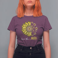 Sunflower Botanical Bee Save The Bees Inspirational Beekeeping Beekeeper T Shirt For Women TS02
