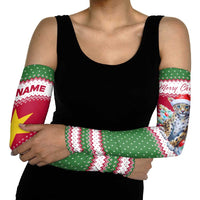 Suriname Christmas Arm Sleeves with Red-Green Knit Pattern, Yellow Star, and Santa Leopard Motif