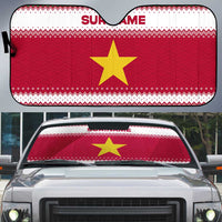 Suriname Christmas Auto Sun Shade with Red-Green Knit Pattern, Yellow Star, and Santa Leopard Motif