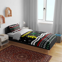 Suriname Christmas Bedding Set with Black Festive Pattern, Golden Ship, Palm Tree, and Coat of Arms Motif TS04