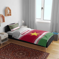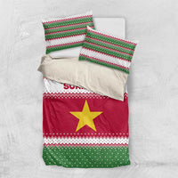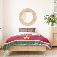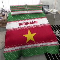 Suriname Christmas Bedding Set with Red-Green Knit Pattern, Yellow Star, and Santa Leopard Motif