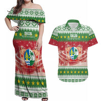 Suriname Christmas Couples Matching Off Shoulder Maxi Dress and Hawaiian Shirt Coat Of Arms Zalig Kersfeest LT05