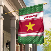 Suriname Christmas Garden Flag with Red-Green Knit Pattern, Yellow Star, and Santa Leopard Motif