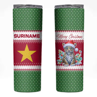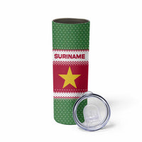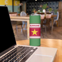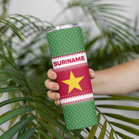 Suriname Christmas Skinny Tumbler with Red-Green Knit Pattern, Yellow Star, and Santa Leopard Motif