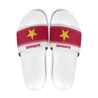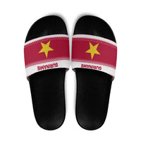 Suriname Christmas Slide Sandals with Red-Green Knit Pattern, Yellow Star, and Santa Leopard Motif
