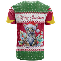 Suriname Christmas T Shirt with Red-Green Knit Pattern, Yellow Star, and Santa Leopard Motif TS04