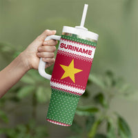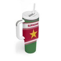 Suriname Christmas Tumbler With Handle with Red-Green Knit Pattern, Yellow Star, and Santa Leopard Motif