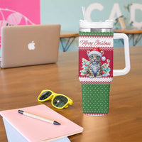 Suriname Christmas Tumbler With Handle with Red-Green Knit Pattern, Yellow Star, and Santa Leopard Motif TS04