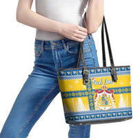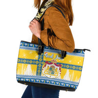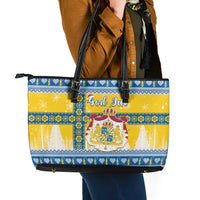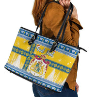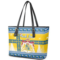 Sweden Christmas Leather Tote Bag Coat Of Arms - Scandinavian Pattern LT15