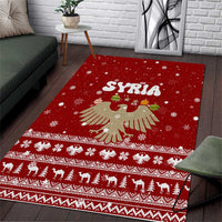 Syria Christmas Area Rug with Golden Eagle Emblem Christmas Camel Scene