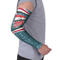 Syria Christmas Arm Sleeves with National Flag Motif, Coat of Arms Eagle, and Festive Snowflake Pattern