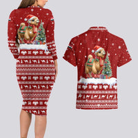 Syria Christmas Couples Matching Long Sleeve Bodycon Dress and Hawaiian Shirt with Golden Eagle Emblem Christmas Camel Scene TS04