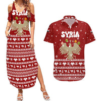 Syria Christmas Couples Matching Summer Maxi Dress and Hawaiian Shirt with Golden Eagle Emblem Christmas Camel Scene