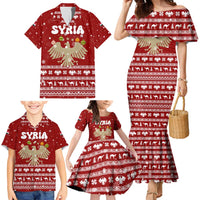 Syria Christmas Family Matching Mermaid Dress and Hawaiian Shirt with Golden Eagle Emblem Christmas Camel Scene