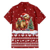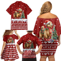 Syria Christmas Family Matching Off Shoulder Short Dress and Hawaiian Shirt with Golden Eagle Emblem Christmas Camel Scene