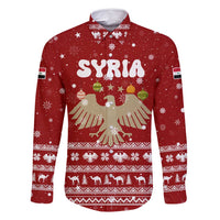 Syria Christmas Family Matching Off Shoulder Short Dress and Hawaiian Shirt with Golden Eagle Emblem Christmas Camel Scene TS04