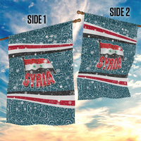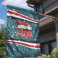 Syria Christmas Garden Flag with National Flag Motif, Coat of Arms Eagle, and Festive Snowflake Pattern