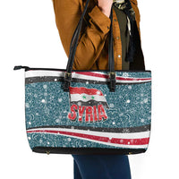Syria Christmas Leather Tote Bag with National Flag Motif, Coat of Arms Eagle, and Festive Snowflake Pattern
