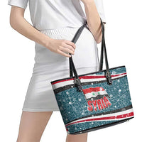 Syria Christmas Leather Tote Bag with National Flag Motif, Coat of Arms Eagle, and Festive Snowflake Pattern TS04