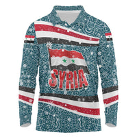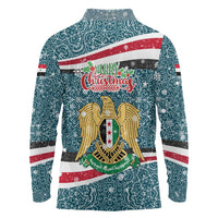 Syria Christmas Long Sleeve Polo Shirt with National Flag Motif, Coat of Arms Eagle, and Festive Snowflake Pattern TS04
