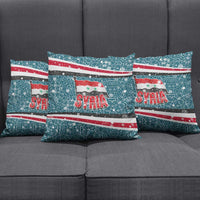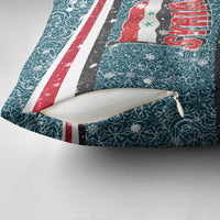 Syria Christmas Pillow Cover with National Flag Motif, Coat of Arms Eagle, and Festive Snowflake Pattern TS04