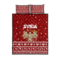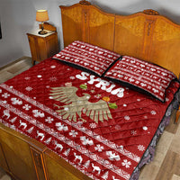 Syria Christmas Quilt Bed Set with Golden Eagle Emblem Christmas Camel Scene