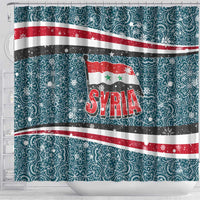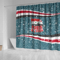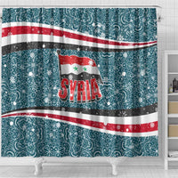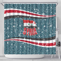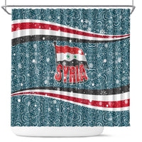 Syria Christmas Shower Curtain with National Flag Motif, Coat of Arms Eagle, and Festive Snowflake Pattern TS04