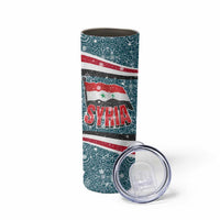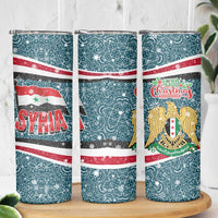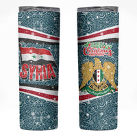 Syria Christmas Skinny Tumbler with National Flag Motif, Coat of Arms Eagle, and Festive Snowflake Pattern