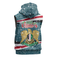 Stay cool, comfortable, and stylish with the Syria Christmas Sleeveless Hoodie with National Flag Motif, Coat of Arms Eagle, and Festive Snowflake Pattern from Wonder Print Shop. Designed for active lifestyles and casual wear, this sleeveless hoodie delivers the perfect mix of standout design, comfort, and durability — a versatile piece for workouts, streetwear, or layering.