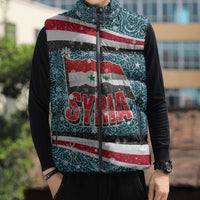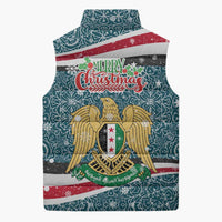 Get your Syria Christmas Sleeveless Puffer Jacket with National Flag Motif, Coat of Arms Eagle, and Festive Snowflake Pattern by Wonder Print Shop today and experience warmth, style, and versatility in one perfect piece.