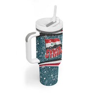 Syria Christmas Tumbler With Handle with National Flag Motif, Coat of Arms Eagle, and Festive Snowflake Pattern TS04