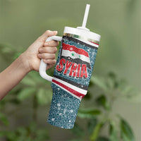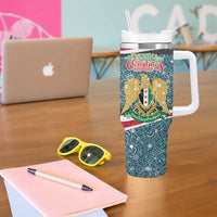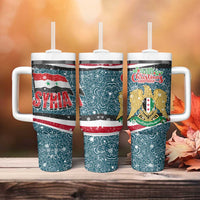Syria Christmas Tumbler With Handle with National Flag Motif, Coat of Arms Eagle, and Festive Snowflake Pattern