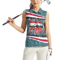 Syria Christmas Women Sleeveless Polo Shirt with National Flag Motif, Coat of Arms Eagle, and Festive Snowflake Pattern TS04