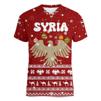 Syria Christmas Women V-Neck T-Shirt with Golden Eagle Emblem Christmas Camel Scene TS04
