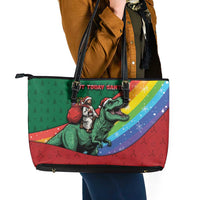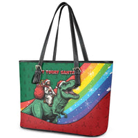 T Rex And Jesus Christmas Leather Tote Bag Not Today Santa