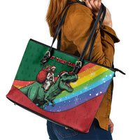 T Rex And Jesus Christmas Leather Tote Bag Not Today Santa DT05