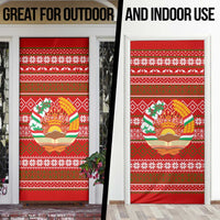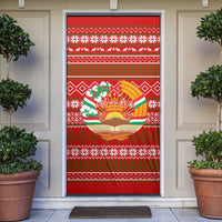 Tajikistan Christmas Door Cover with Santa Riding Snow Leopard National Emblem and Red Holiday Pattern TS04