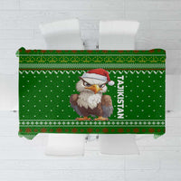 Tajikistan Christmas Tablecloth with Santa Hat Eagle Green Snowflake Pattern and Holiday Design