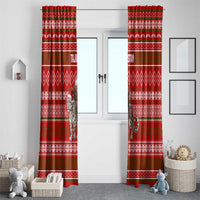Tajikistan Christmas Window Curtain with Santa Riding Snow Leopard National Emblem and Red Holiday Pattern TS04